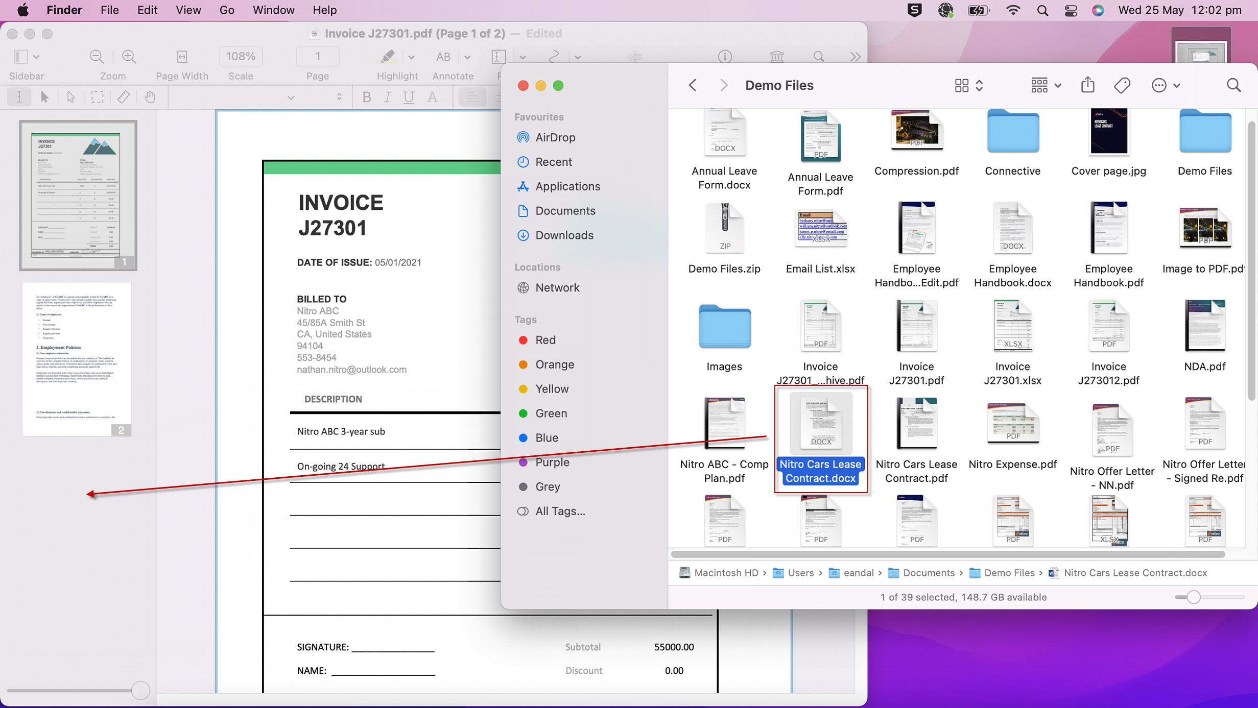 3. Drag and drop the PDF document from Finder, into the Sidebar in Nitro PDF Pro.