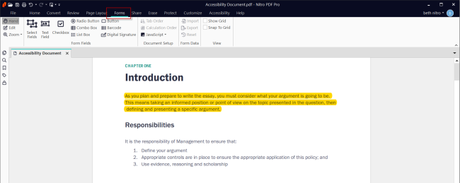 Nitro Pro enables you to edit the properties of the different form fields in the document
