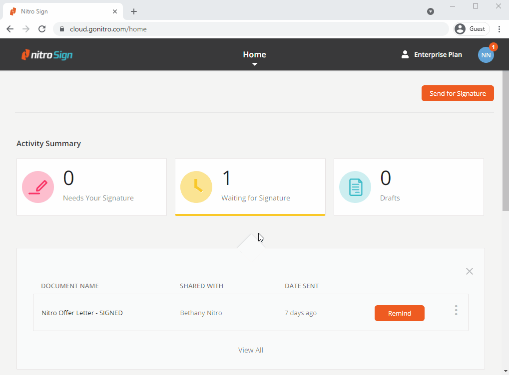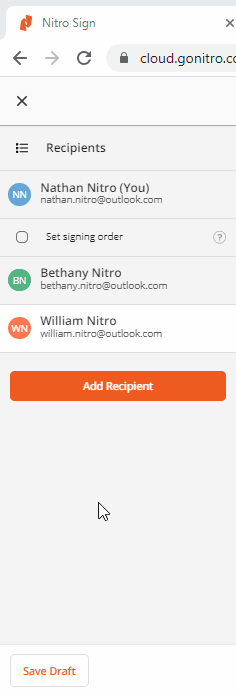 Note: Your recipients do not need a Nitro Sign account in order to sign the document. They are able to sign the document on their mobile, tablet device, laptop, or personal computer without a Nitro Sign account.