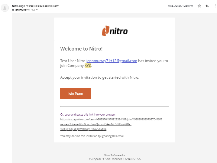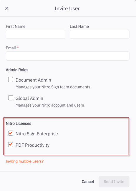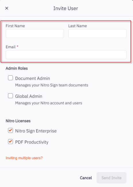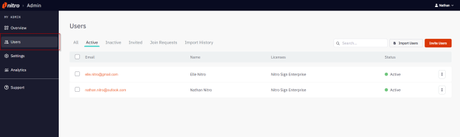 To invite individual users to join your Nitro Sign Team: