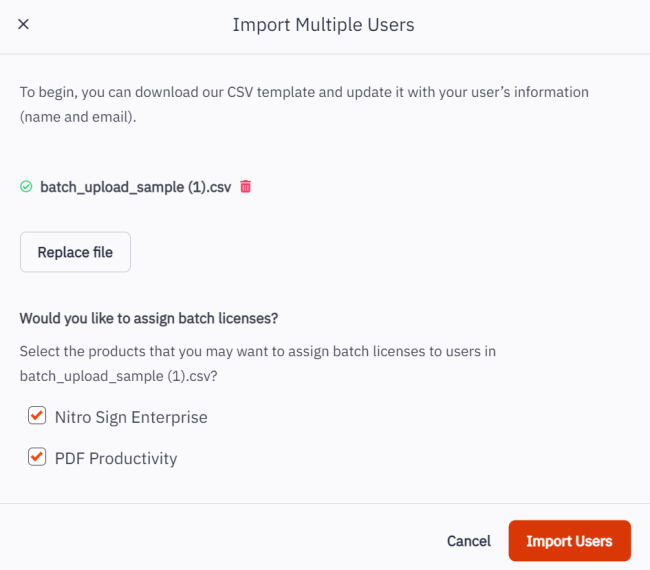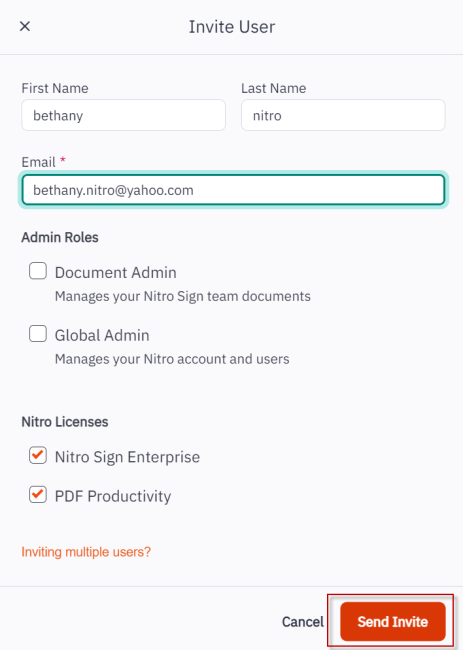 To invite multiple users to join your Nitro Sign Team: