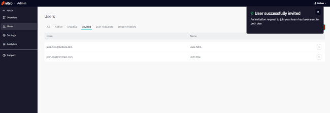 Click on the video below to watch a demo of how to invite users to join your Nitro Sign team.