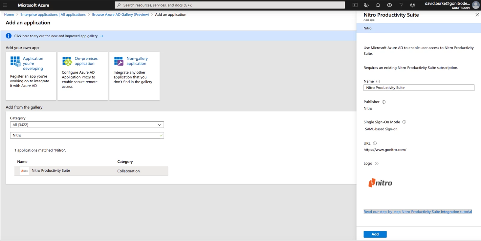 7. Open this article on Azure AD SSO Integration with Nitro in another tab.