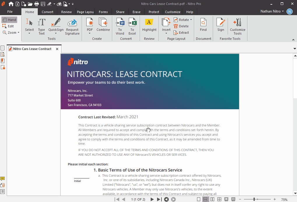 The Whiteout Tool in Nitro gives you the power to securely obscure content in PDF documents. However, use this powerful feature with care—just like using whiteout on paper, when a section of the document is covered with whiteout, the action cannot be undone after the document is saved.